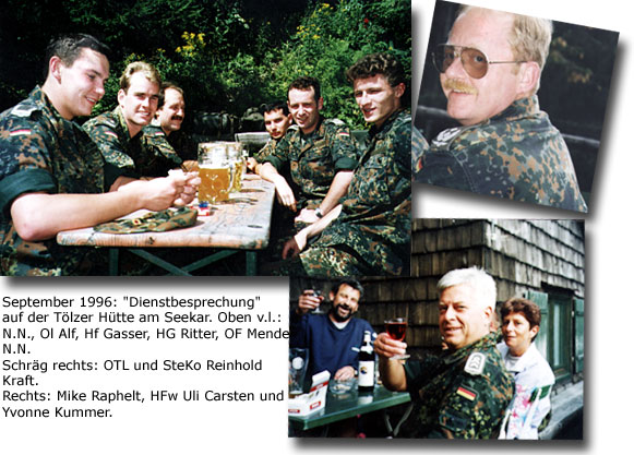 Ganz rechts: OLT Andreas Römer mit Angela Thoma, Bild links: OFw Fleissner, Josef Wasensteiner, OFw Peter Müller und Oberfeldwebel Mende.