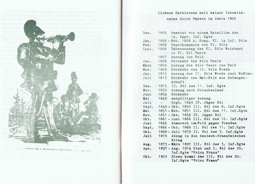 der Kamerad Ulrich Krömer hat mir ein Buch der Garnisonstadt Lindau in Kopie zur Verfügung gestellt. Ich habe deshalb diese Seite neu ein-gefügt. Nachfolgend kann man nun im Buch "Kleine Garnisionsgeschichte der Stadt Lindau(B)" etwas über die Geschichte des Batalaillons lesen. Das Wappen und das rechte Bild stammt ebenfalls vom Kameraden Krömer.